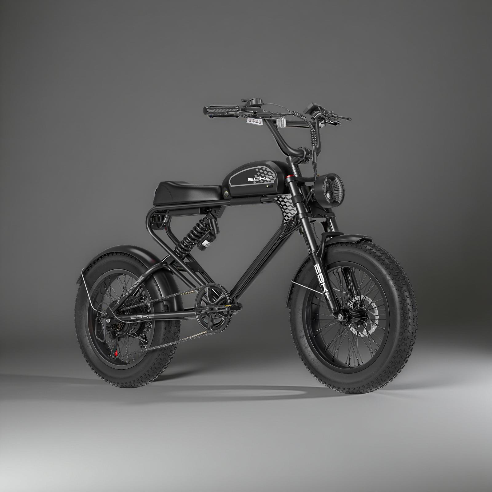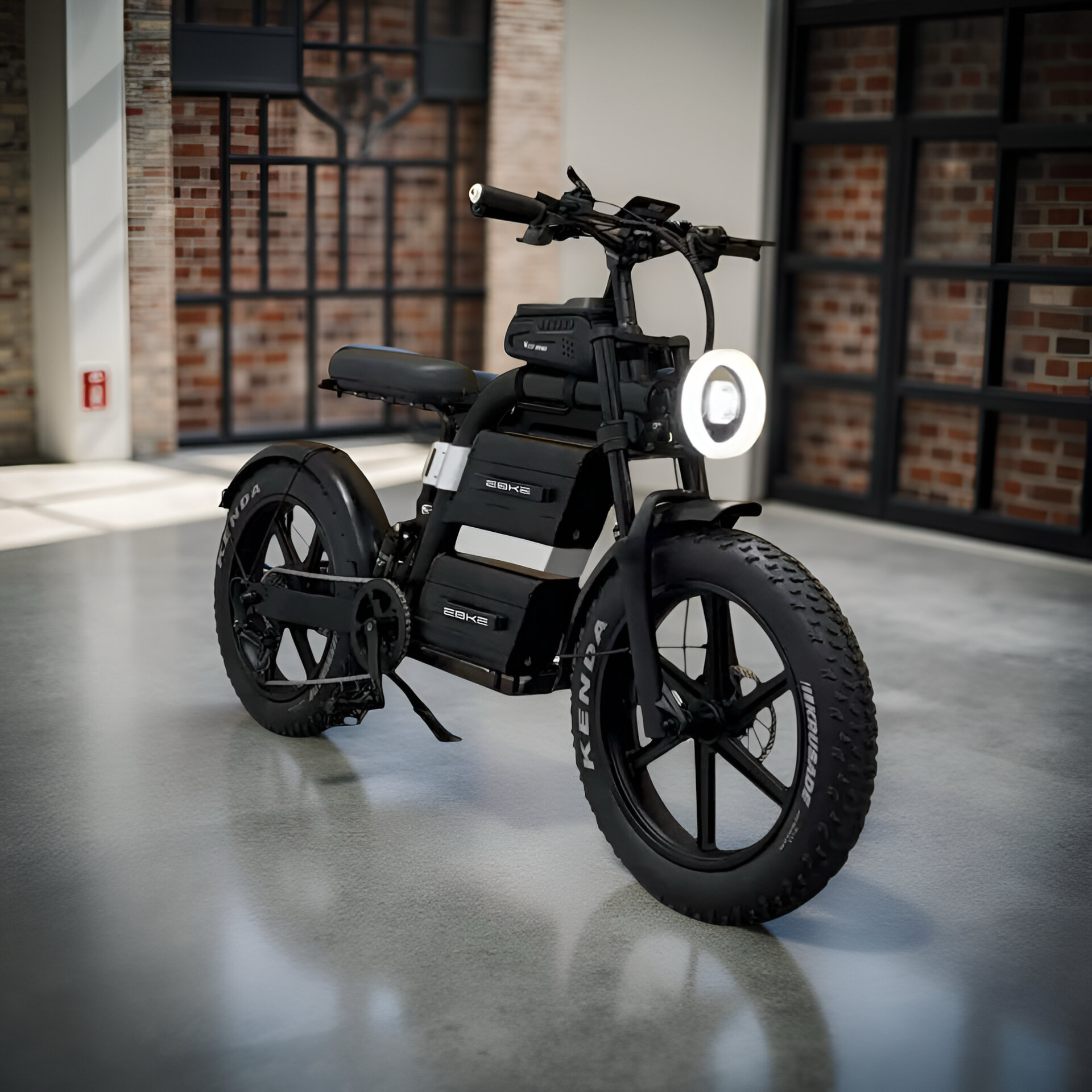 Imagine a bike that blends bold aesthetics, rugged all-terrain capability and modern e-bike sophistication — that's the essence of the EBKE F-Line. With a commanding motor, hydraulic disc brakes and a whisper-quiet carbon (or carbon‐reinforced) belt drive system, this fat-tyre electric bike is crafted for those who want to ride with style, power and minimal fuss.